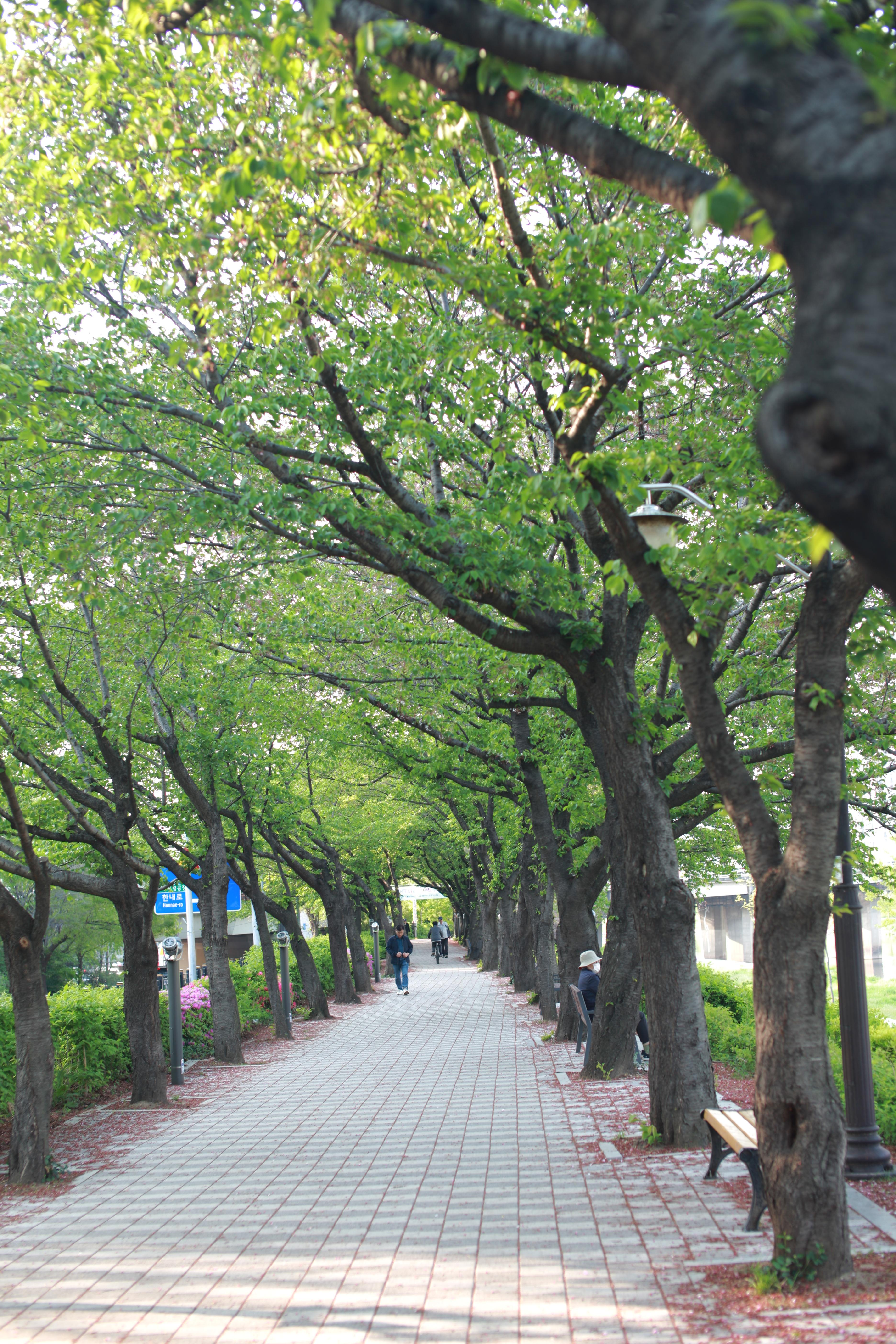 2025년 4월 말. 벚꽃이 진 나무엔 나뭇잎이 아무일도 없던 것처럼 푸르르기만 하다.